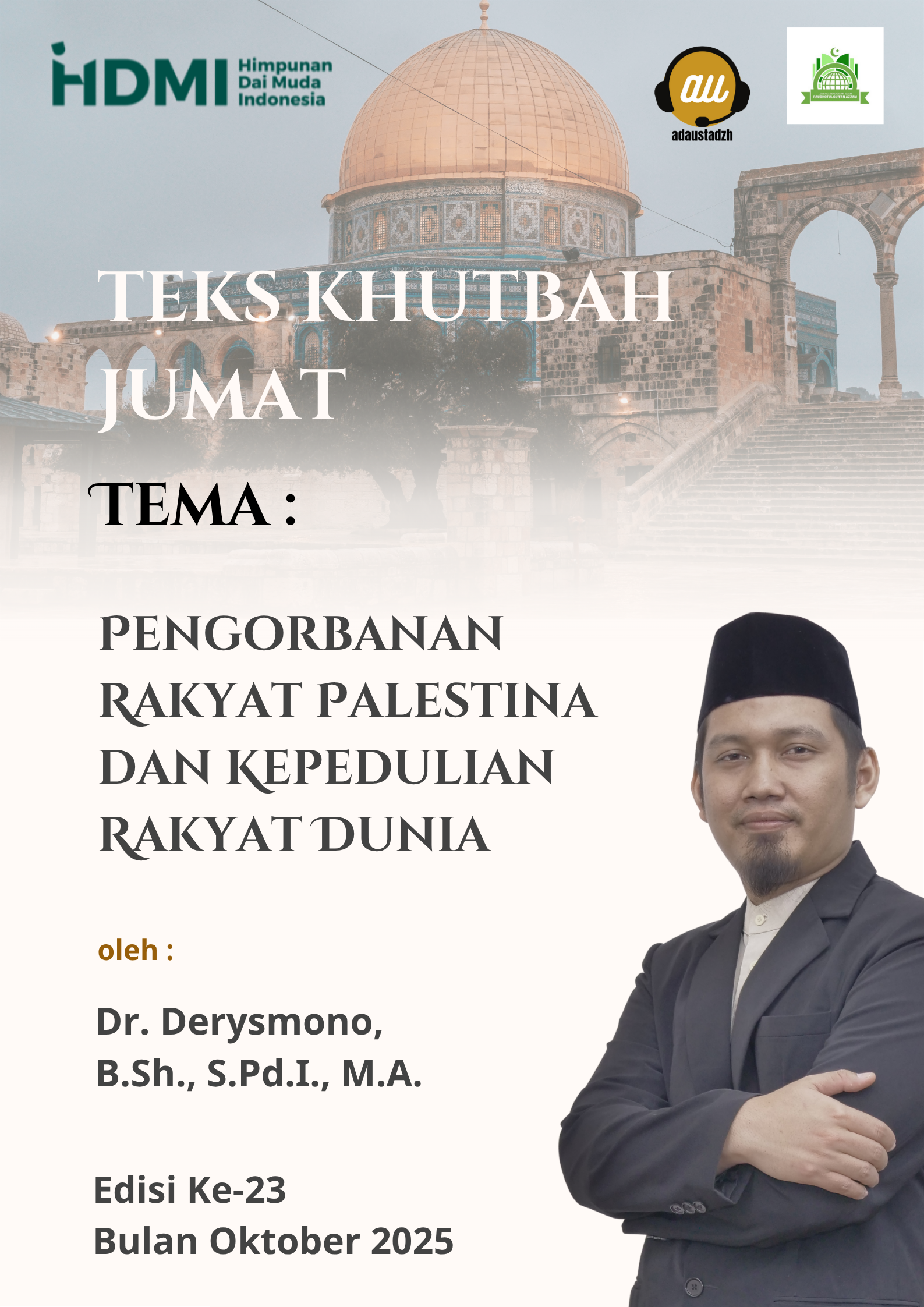 Teks Khutbah Jum’at “Pengorbanan Rakyat Palestina dan Kepedulian Rakyat Dunia” Oleh Dr. Derysmono, B.Sh., S.Pd.I., M.A.
